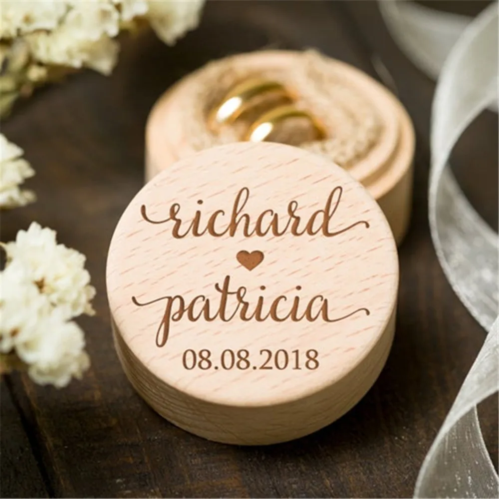 Заказная коробка кольца Персонализированная свадьба на День Валентина, обручальное деревянное кольцо коробка для носителя ювелирных изделий коробки венок Свадебная деревянная коробочка для колец