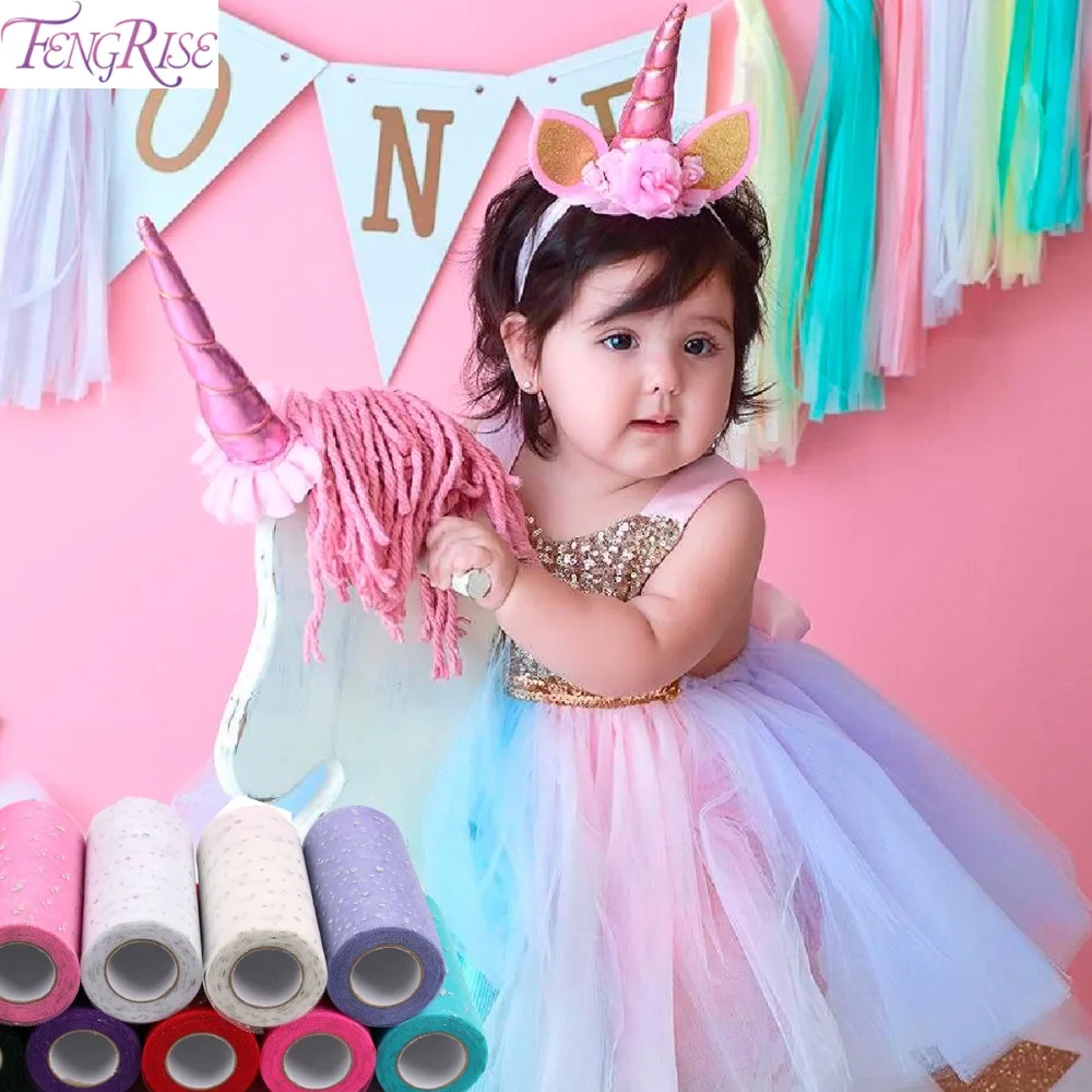 FENGRISE 10/25 ярд 15 см Блестящий тюль рулон блесток органза катушка пачка Свадебный декор DIY ремесло Единорог товары для дня рождения