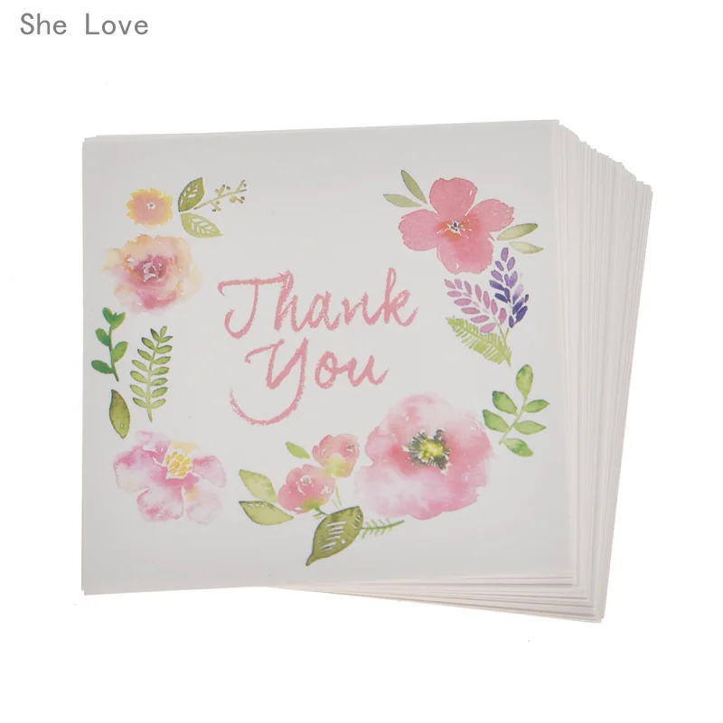 Она любит 50 шт. спасибо цветы бумажные карты награды подарок букет украшения для свадьбы