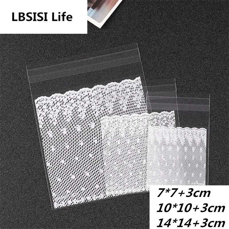 LBSISI Life 100/200 шт кружевные пакеты для печенья, конфет, украшения для свадьбы, дня рождения, вечерние Самоклеющиеся пластиковые упаковки для печенья, подарочный пакет