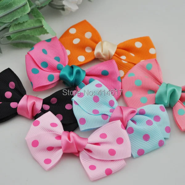 10 шт. Dot Grosgrain ленты луки цветы аппликациями Свадебные Поставки ремесла A099