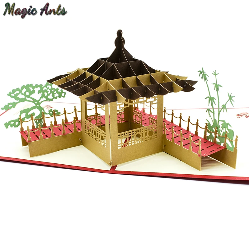 Винтаж здания открытка-раскладушка день рождения с наклейка на конверт лазерная обработка поздравительная Почтовая открытка Киригами кре...