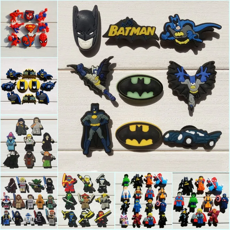 8-16 шт супергерой Бэтмен мультфильм рисунок значок ПВХ обувная Пряжка обувь Шарм подходят КРОК обувь и Браслет декоративный ребенок подарок...