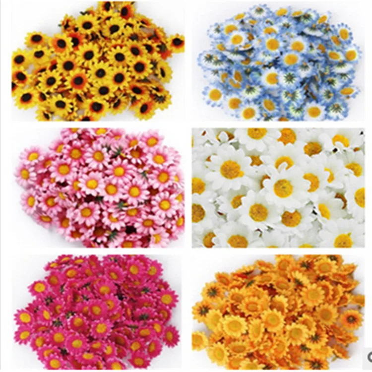 100 шт маленькие ромашки Подсолнечник Искусственные Шелковые головки цветов для свадебного декора DIY ВЕНОК подарок Скрапбукинг товары для рукоделия