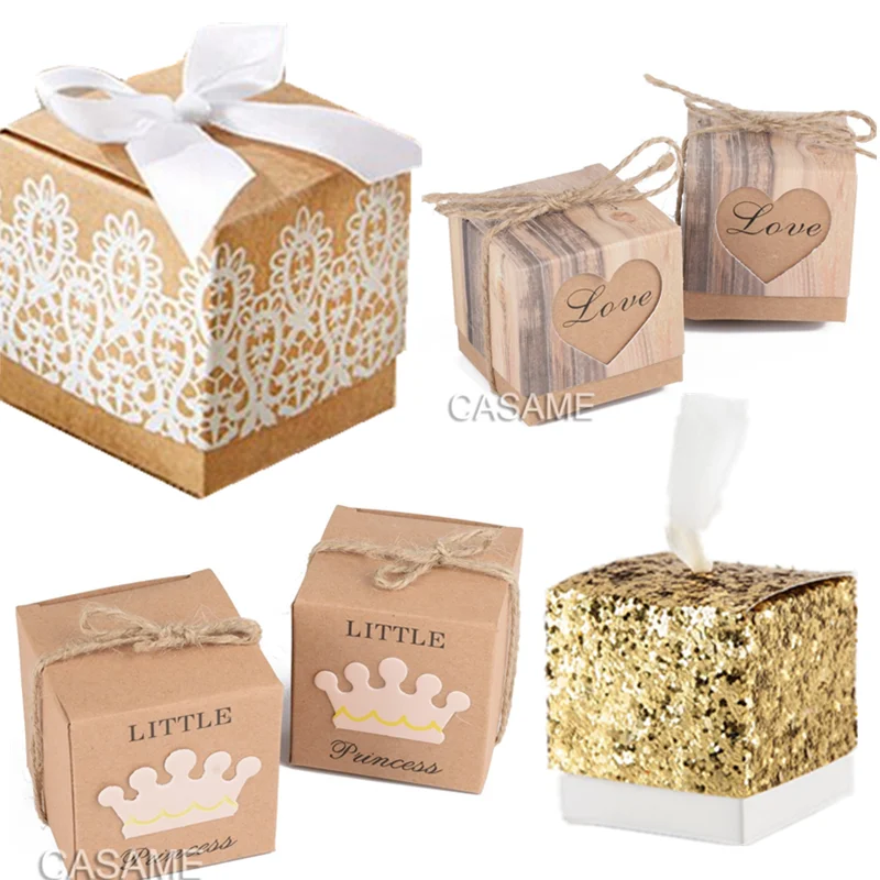 10 шт Сладкий прекрасное украшение коробка конфет бумаги подарочные коробки коробка деревенский и кружева Подарочная ручной работы коробка...