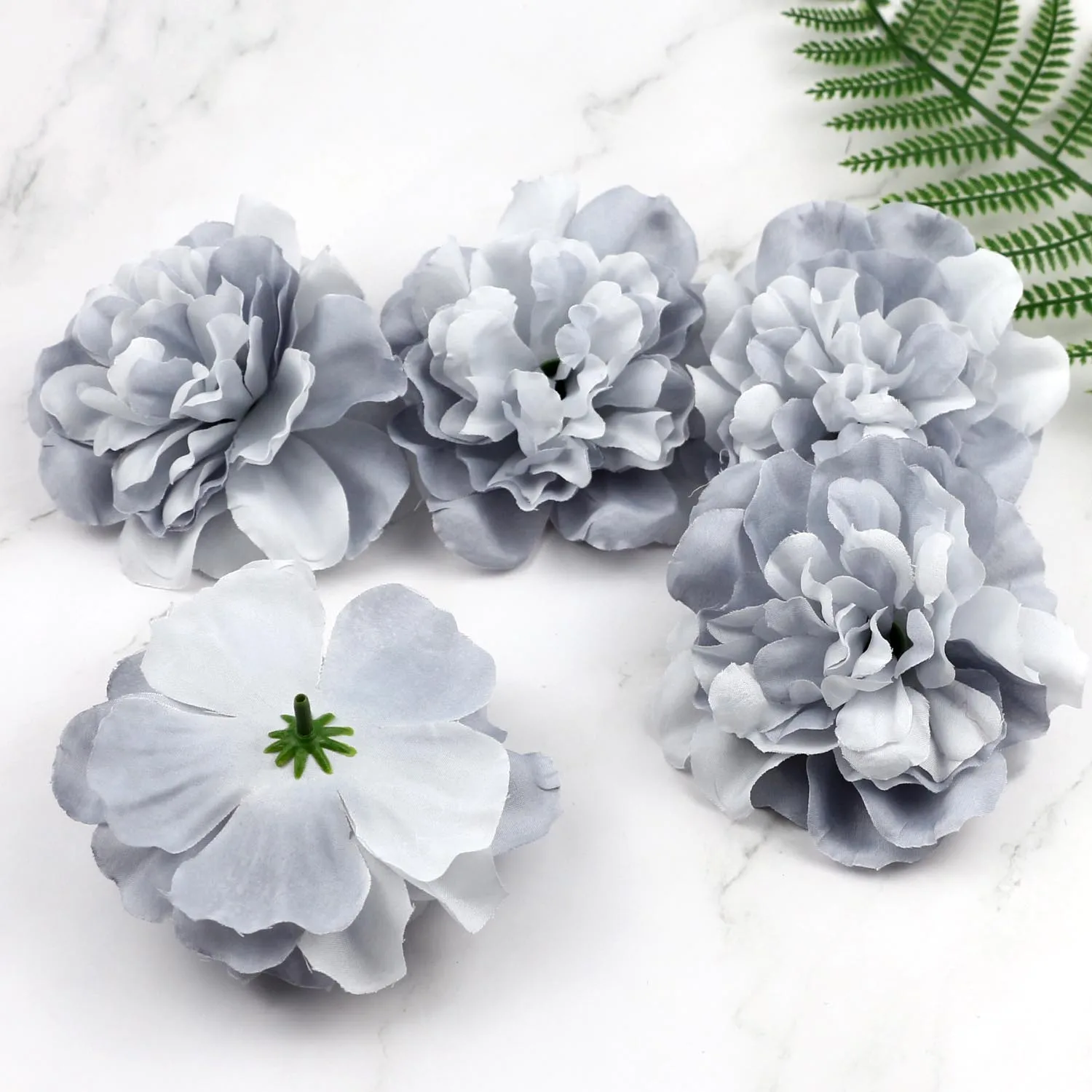 Lulan упаковка из 5 больших серых искусственных цветов поддельные Dahlia цветок маргаритки для свадебных украшений 4,3"