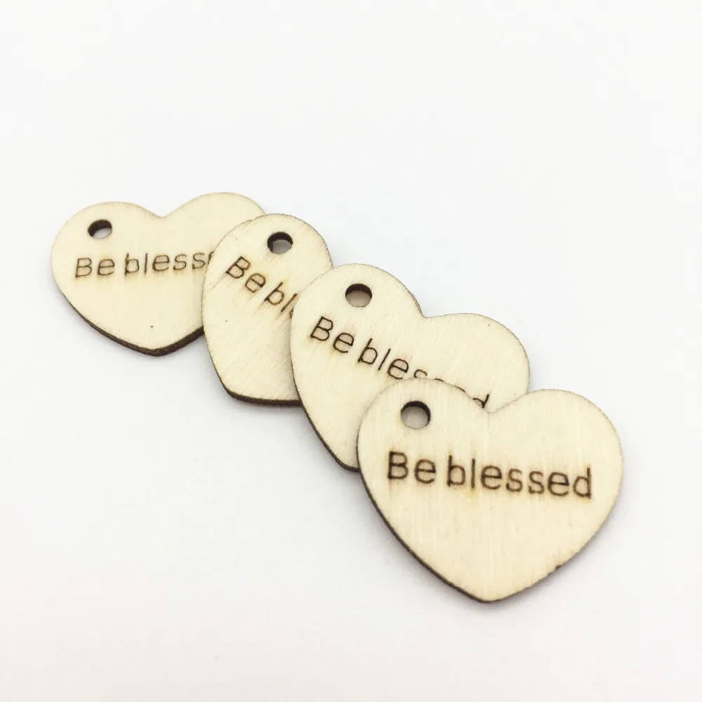 50 шт. 25x21 мм Сердце "Be blessed" Лазерная резка древесины ярлыки для сувениров Подвески Украшения для брелоков изготовление скрапбукинга