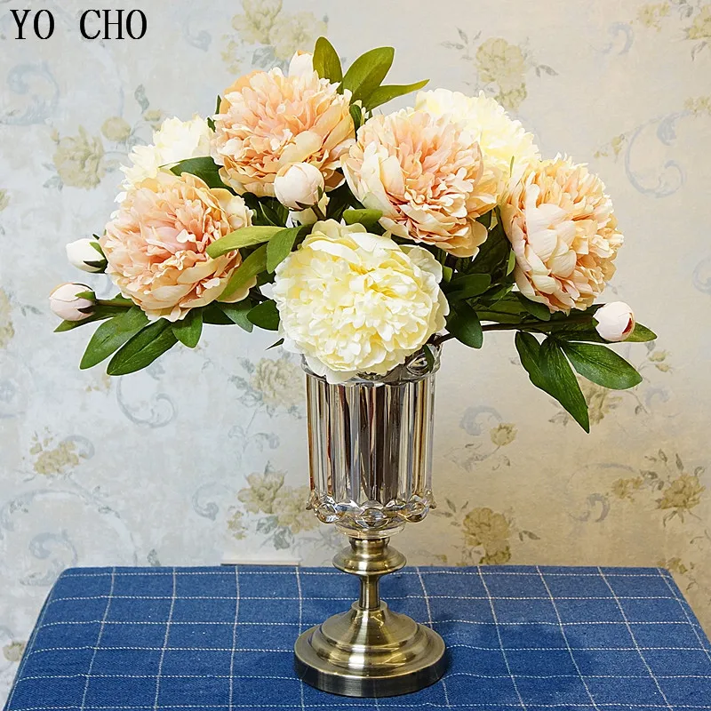 YO CHO ретро большие искусственные пионы цветы ветка DIY открытый сад балкон Декор шелковые искусственные цветы для свадьбы домашний декор ваз...
