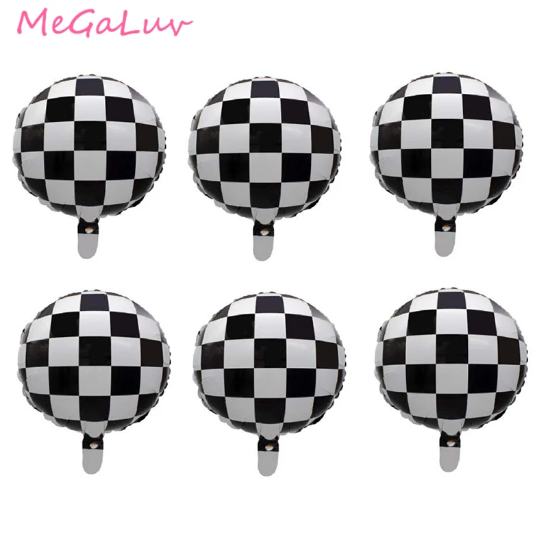6 шт. 18 дюймов черные белые гоночные автомобильные воздушные шары из фольги круглые гелиевые шарики для день рождения гоночные украшения для тематических вечеринок спортивные мероприятия