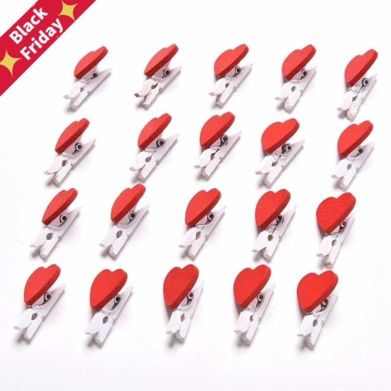 Деревянные Мини-заколки в виде сердца для одежды, фотобумага, прищепка для прищепки, украшения для дома, свадьбы, 20 шт./упак.