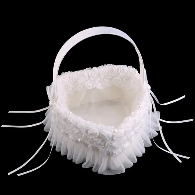Имитация цветка розы для украшения свадебной корзины, белый бант, Кружевной декор для девочки, корзина для свадебной церемонии, украшения для вечеринки