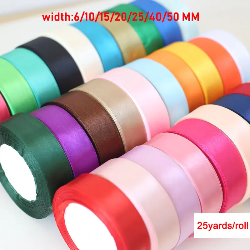 25 ярдов/рулон 6 мм, 10 мм, 15 мм, 20 мм, 25 мм, 40 мм, 50 мм, шелковые атласные ленты для рукоделия, шитья, рукоделия, материалы, Подарочная обертка