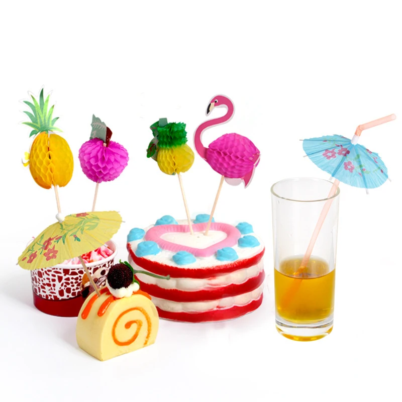10 шт. украшения для коктейлей, зонтик, бамбуковая палочка, лето для тропической Гавайской вечеринки вечерние Гавайские пляжные темы, фламин...