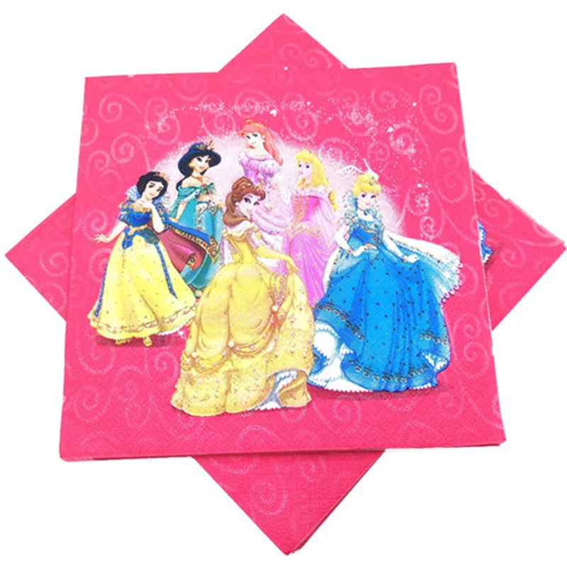 20 шт. Ариэль/Белоснежка/Белль/Золушка/Жасмин/Аврора принцесса бумажные салфетки для вечеринки, дня рождения, вечеринок, тканевые полотенца