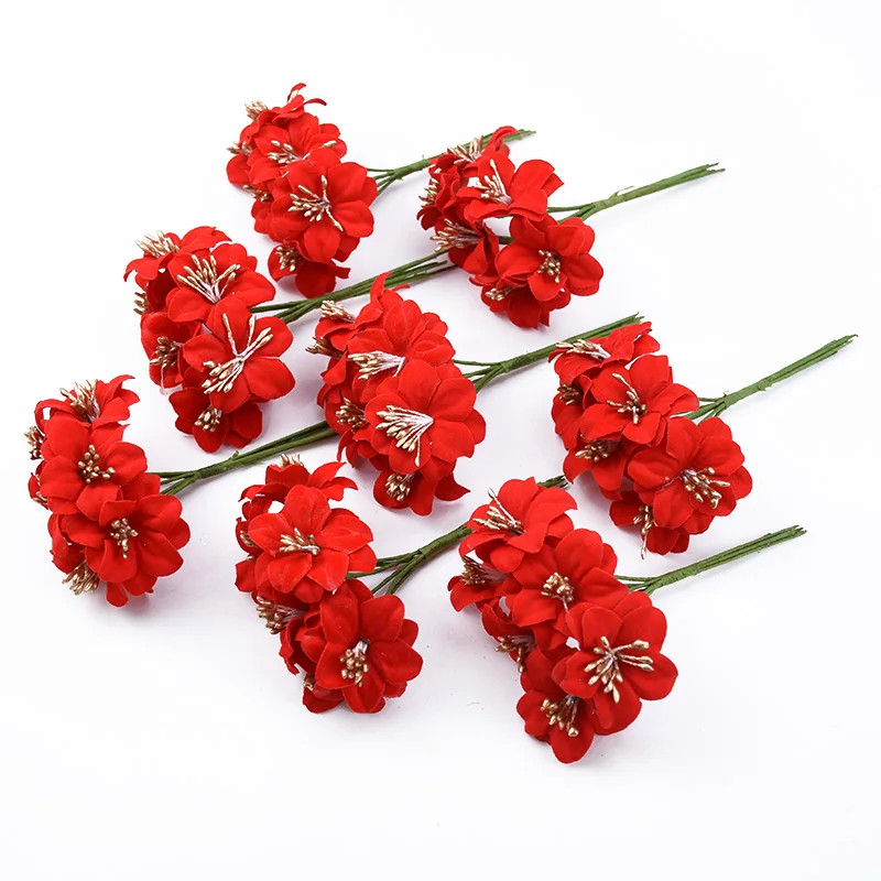 6 шт. красный тычинки цветок сливы Рождественские украшения для дома diy Подарочная коробка свадебные декоративные цветы венок с искусственн...