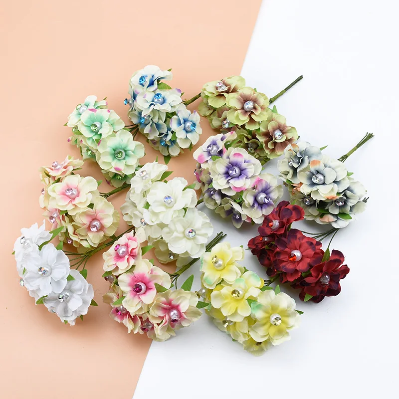 6 шт. искусственные растения декоративные цветы Скрапбукинг Рождество Домашний Декор свадебные аксессуары для невесты зазор цветок