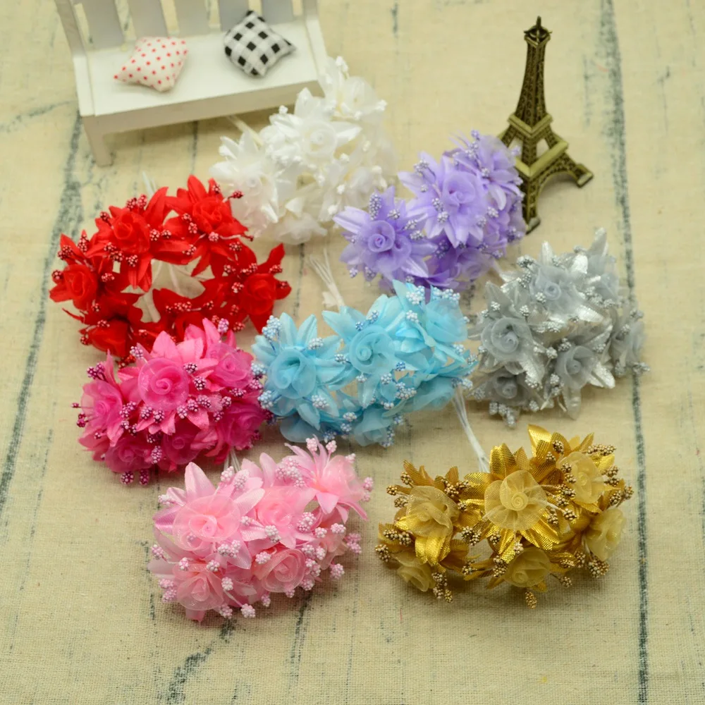 6 шт. Искусственные цветы к Рождеству украшения для дома Свадебные Аксессуары Распродажа diy подарки венок Шелковый тычинки розы