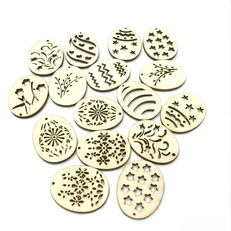 25/50 шт счастливые пасхальные яйца деревянное ремесло пасхальные украшения для дома 40*30 мм DIY щепа пасхальные яйца висячие украшения