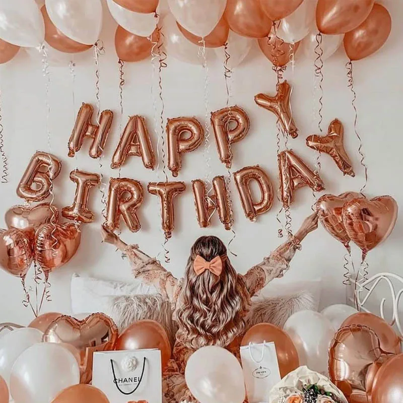 Розовые и золотые воздушные шары из фольги с надписью «Happy Birthday» и надписью «Heart», декоративные шары на день рождения, вечеринку, свадьбу, юбилей, конфетти, латексный шар