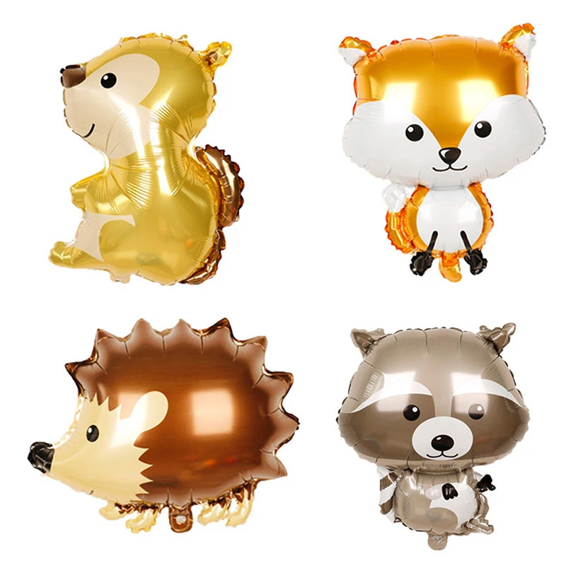 Лесной воздушный шар в форме животного, детский день рождения, украшенный воздушный шар из фольги, ежик, медведь, белка, енот, лиса