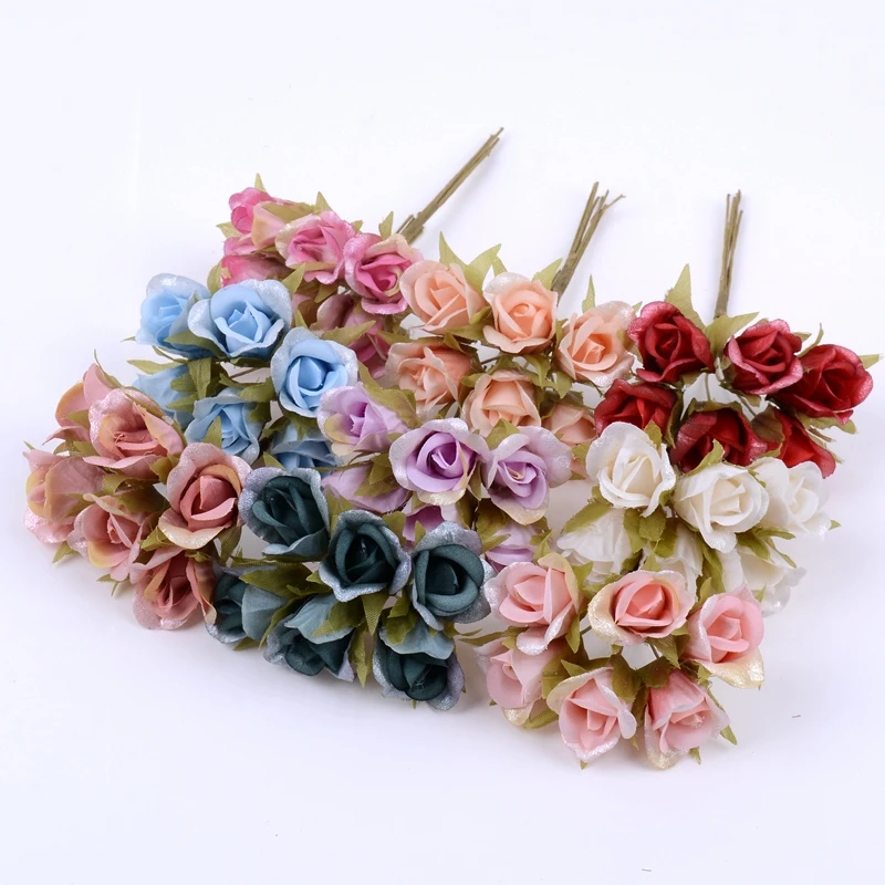 6 шт./лот, 3 см, искусственные цветы ручной работы, букет роз из шелка для свадьбы, дома, вечерние украшения, сделай сам, на новый год, Рождество, скрапбукинг