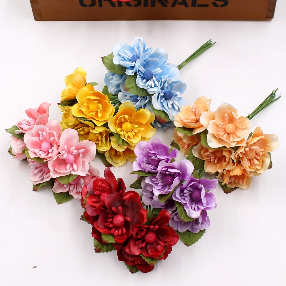6 шт. 4 см Cherry ручной работы искусственные цветы для Свадебные украшения дома номер DIY коробка Скрапбукинг гирлянда цветы