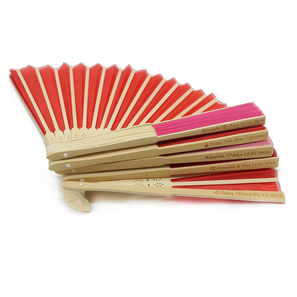 30 шт. * персонализированные дамы бамбука и шелка-сырца руку складные веера открытый Танцы Свадьба День рождения Крещение вечерние пользу