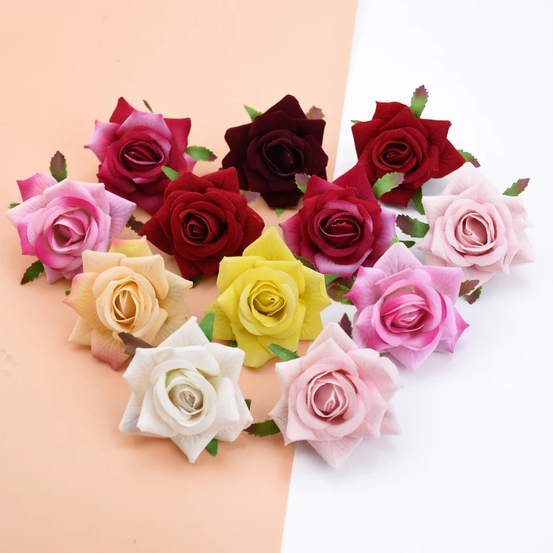 6 шт./лот 4 см Шелковый букет роз искусственный цветок Свадебные украшения дома DIY ВЕНОК записки Подарочная коробка Цветок
