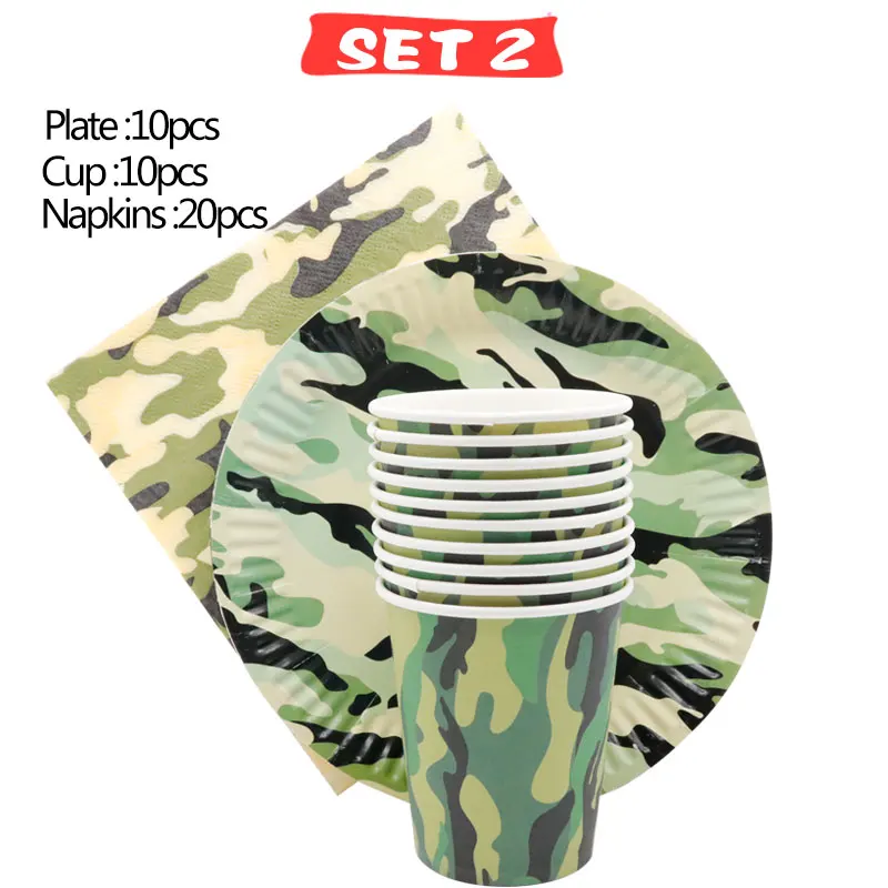 Вечерние украшения чехол камуфляжной расцветки из одноразовая посуда тарелка чашка День рождения Рождественские принадлежности