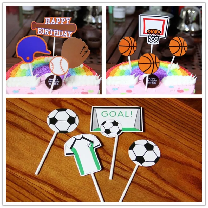 4 шт./компл. Футбол Бейсбол с изображением пирожного на день рожденья Топпер милые Баскетбол бумага торт Топпер для дня рождения Спортивная ...