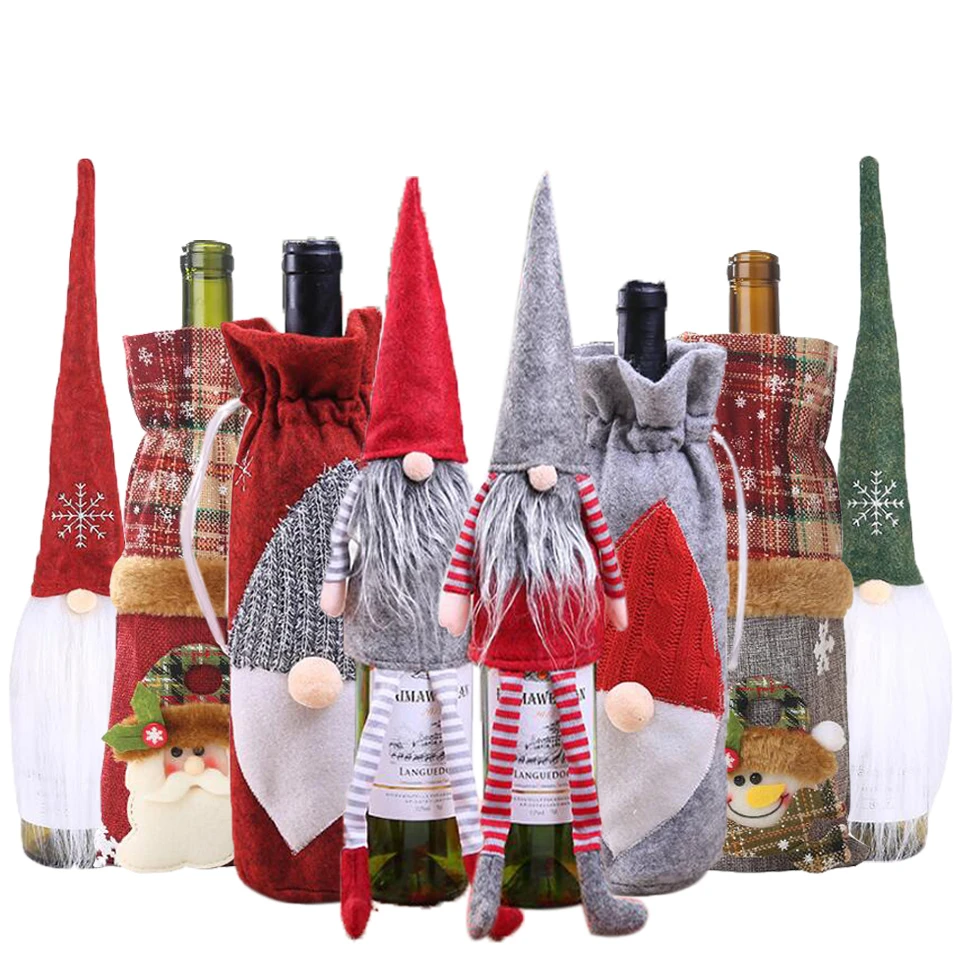 1PC Christmas Snowman/Santa Claus Bottle Sets Multi Style Wine Bottle Cover Holder For Christmas Party/Table Decoration Supplies