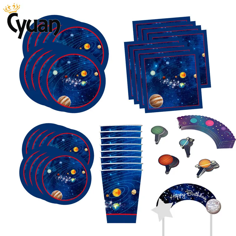 Солнечный Системы космического пространства с днем рождения украшения для баннеров одноразовая посуда торт Toppers классе школы вечерние пос...