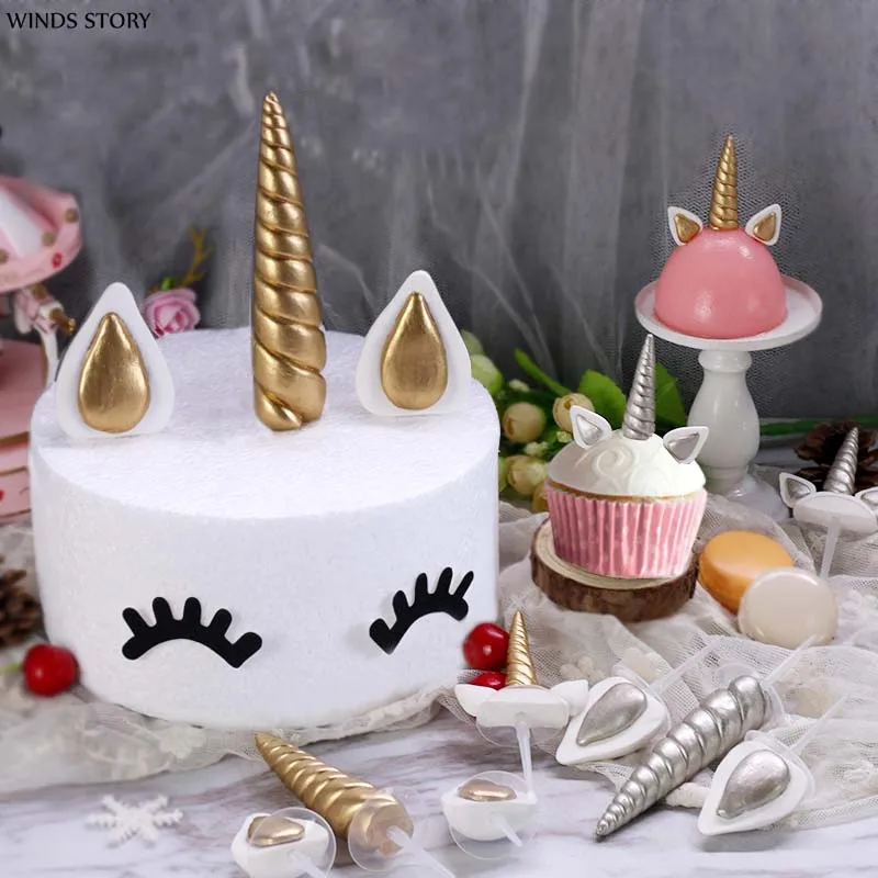 Горячие Единорог Торт Топперы Единорог Рог уши торт украшения кекс топперы Детские День рождения украшения выпечки Инструменты