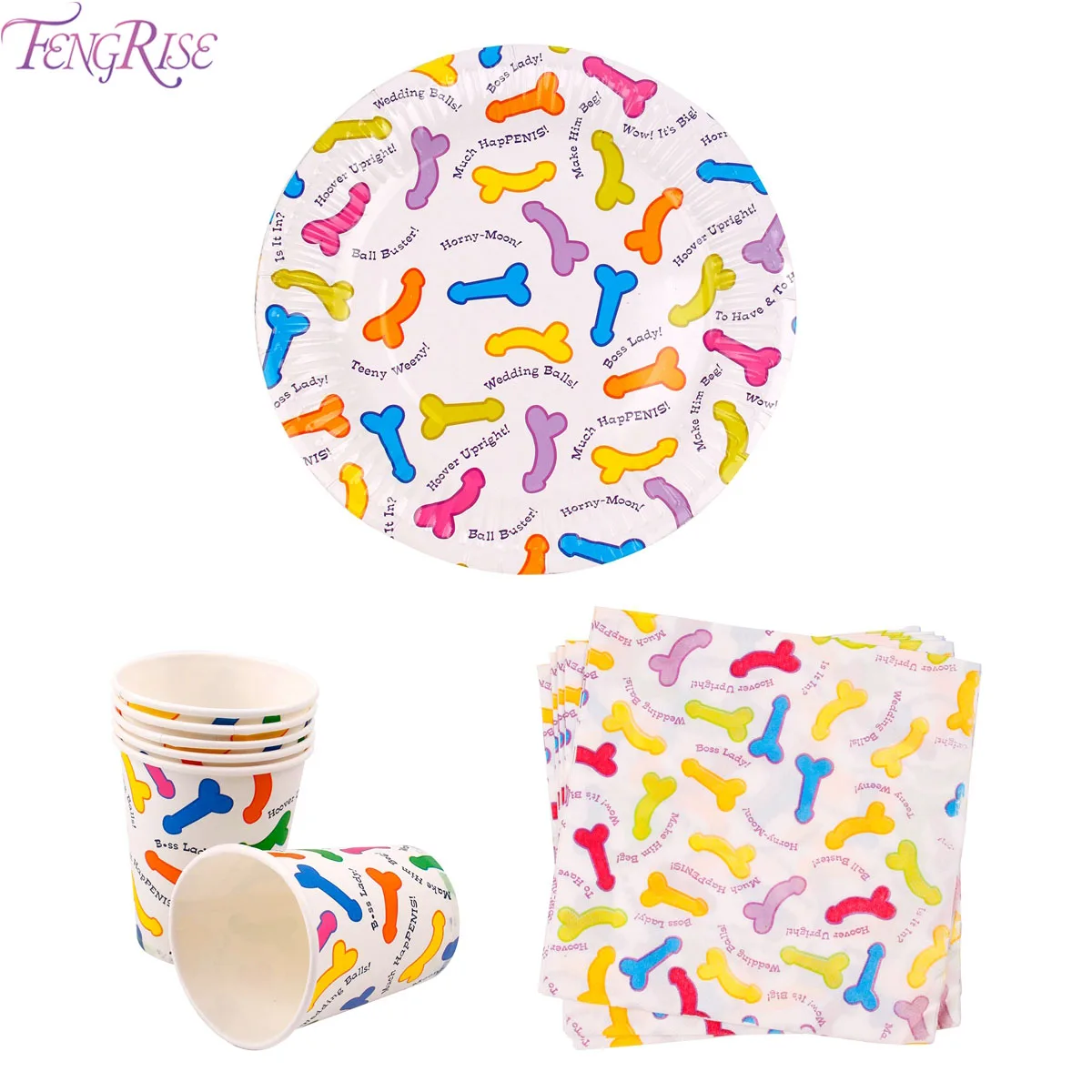 FENGRISE немного пенис узор Одноразовая посуда для вечеринок комплект девичник вечерние украшения курица принадлежности для вечеринки-девичн...