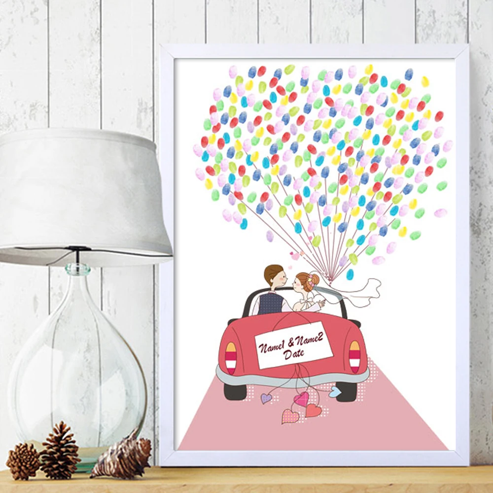 Свадебный автомобиль, Бесплатная заказ имя Дата холст печать отпечатки пальцев Гостевая книга, индивидуальный DIY Гостевая книга для помолв...