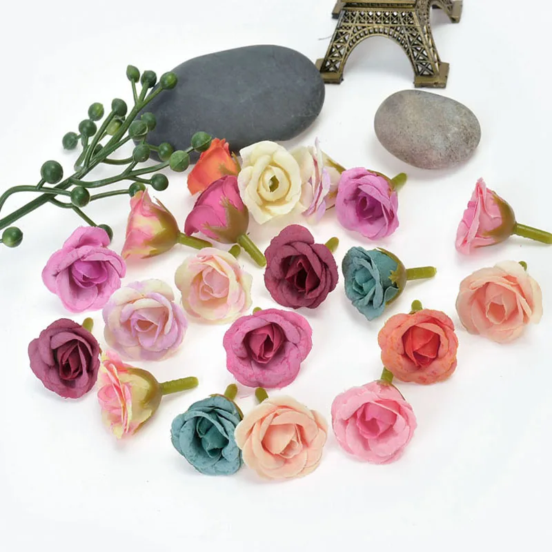 30 шт. мини розовые розы искусственные цветы для свадьбы коробка украшения ручной работы DIY помпоны венок День Святого Валентина поддельные