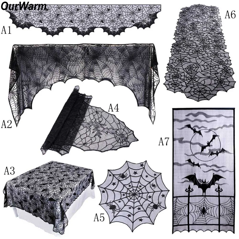 Черный кружевной шарф-паутина на камин, для Хэллоуина