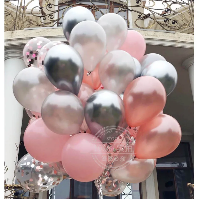 Розовые и золотые воздушные шары, набор конфетти, хромированный металлический шар, украшение для дня рождения, свадьбы, для взрослых и детей, воздушные шары, гелиевые шары