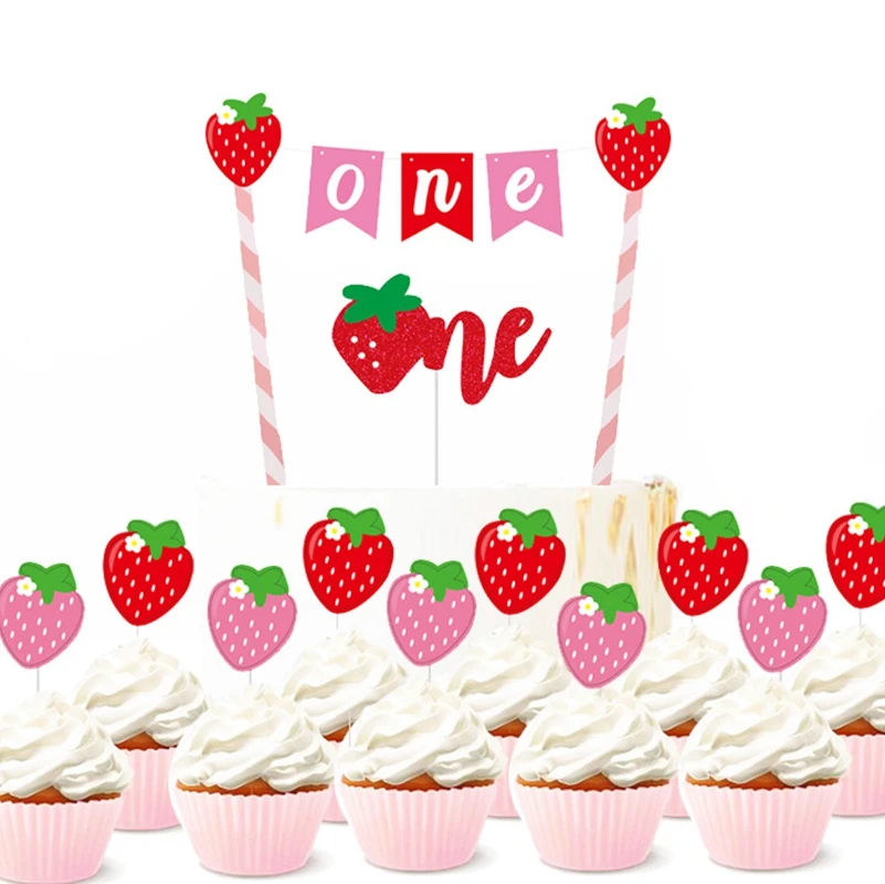 Тема фруктов вечерние клубники одноразовые посуда торт Топпер День рождения Свадьба День благодарения Декор