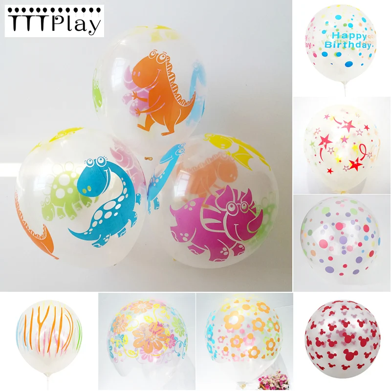 10 шт./лот 12 дюймов утолщаются Смешанные Цвет печати прозрачный шар динозавр шары из латекса на день рождения украшения Интересные детские и...