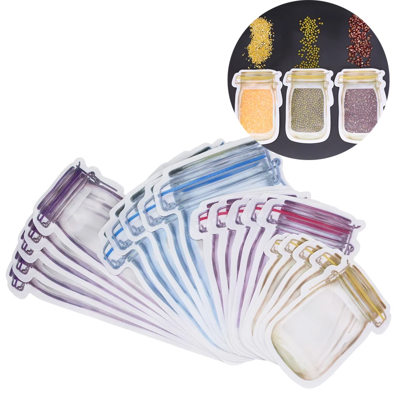 5 шт., 4 размера, многоразовые банки для бутылок, мешки для орехов, конфет, печенья, сумка на молнии, для дома, кухни, для хранения еды, портативн...