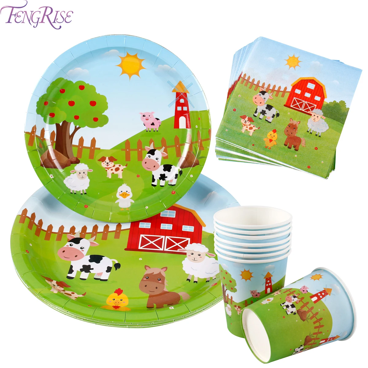 FENGRISE товары для вечеринки на день рождения с животными на ферме, бумажные салфетки для вечеринки в джунглях, одноразовые вечерние столовые приборы в джунглях