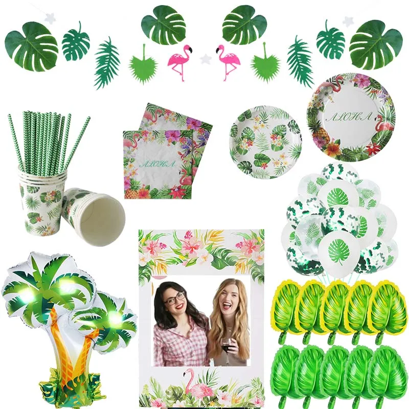 MEIDDING С Днем Рождения Вечеринка тропическая Вечеринка баннер Aloha одноразовая салфетка для посуды принадлежности ладони воздушные шары с листьями Фламинго Декор