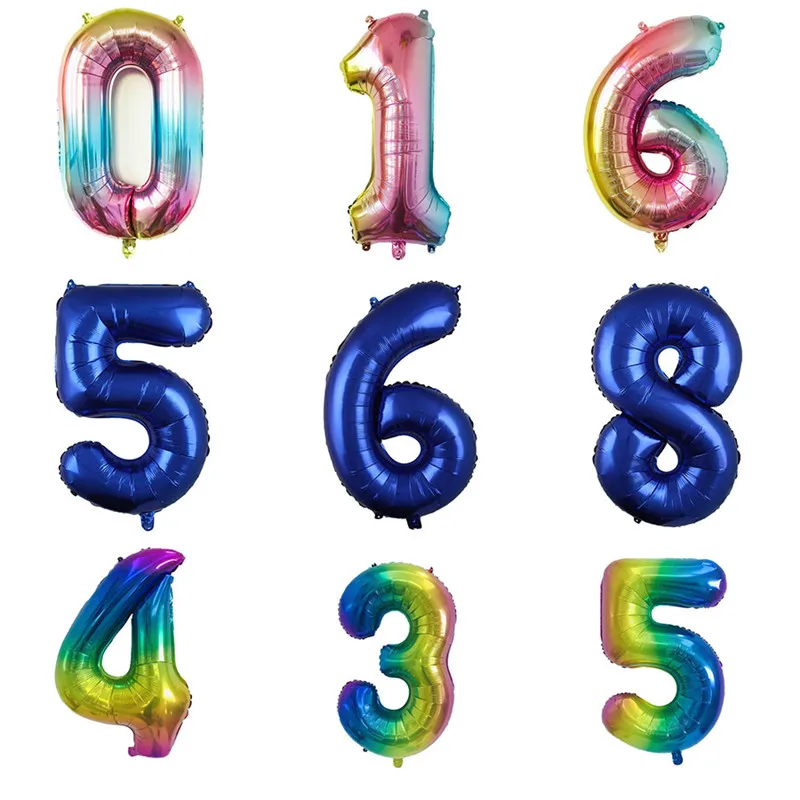 32 дюйма Радуга Цвет синий номер Фольга воздушные шары От 0 до 9 лет Зеленый День рождения украшения дети воздушный шар с гелием Baby Shower Вечерни...