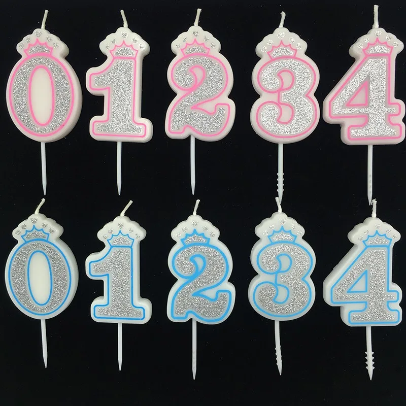 Сверкающие Серебристые розовые/синие короны Happy свечи на день рождения 0-9 для детей взрослых девочек день рождения свечи для торта украшени...