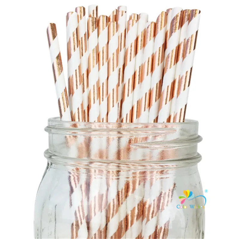 25 шт., твердая полоска, металлик, розовое золото, бумажная соломинка для питья, свадьбы, юбилея, праздника, дня рождения, вечеринки, Настольны...