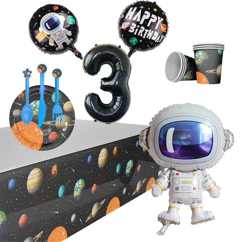 Товары для вечеринки в космическом пространстве, украшения для дня рождения, Детская одноразовая посуда, Набор чашек, тарелок, салфеток, воздушных шаров из фольги космонавта