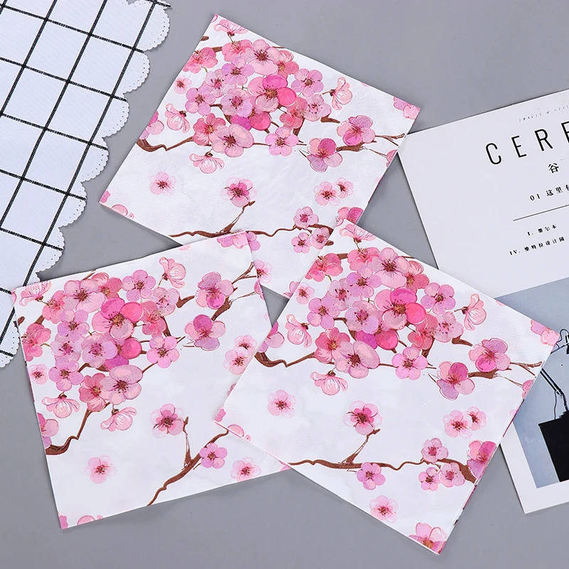 10 шт Сливовый цветок пищевая решетка салфетка с принтом бумажные сервеллетасы декупаж украшенная натуральная деревянная Ткань 33*33 см
