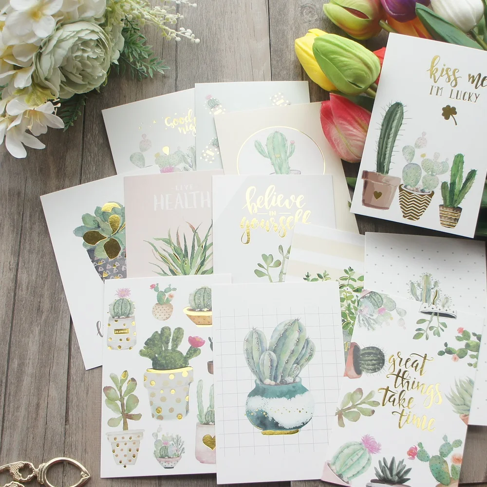 9,3*14,3 см 12 шт Золотая акварель кактус зеленые листья Горшечное растение дизайн Открытка Подарок поздравительные открытки подарочные открытки вечерние приглашения