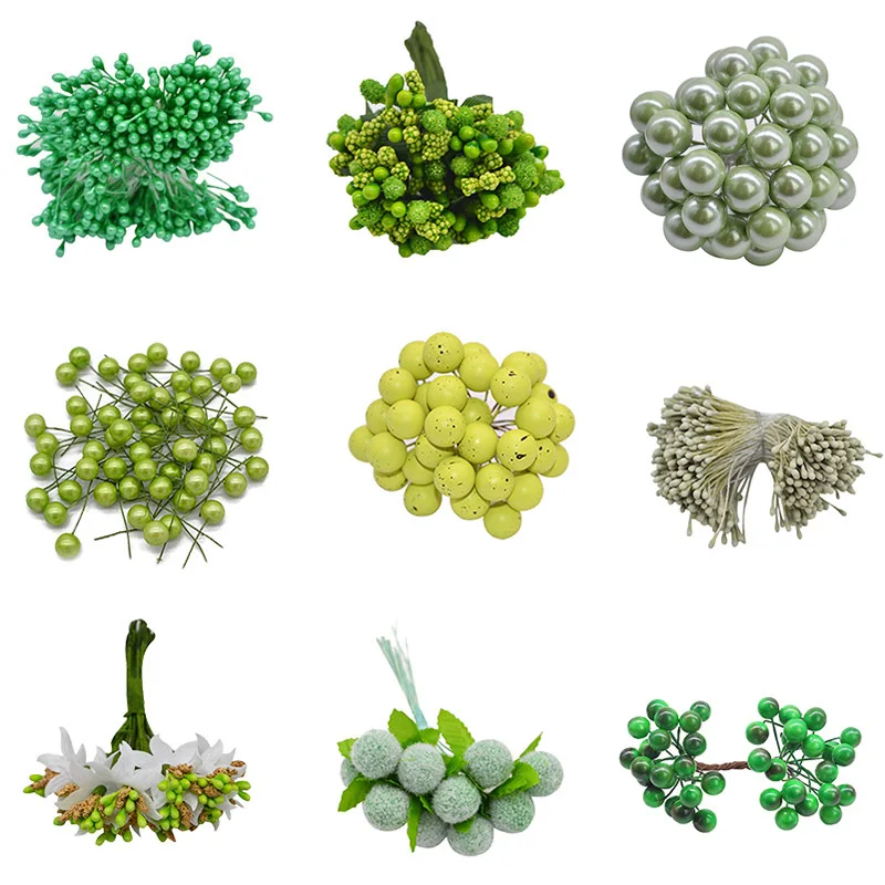 Зеленая тема искусственный цветок вишня тычинки ягоды Набор DIY Рождественское украшение свадебный торт подарочная коробка венки Рождестве...